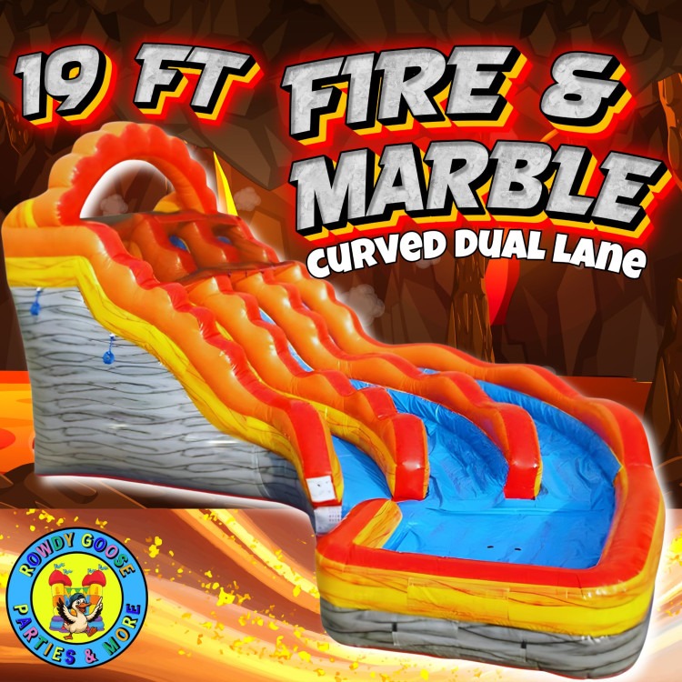 19 Foot Curved Dual Lane Fire & Marble Water Slide